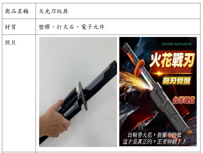 校安宣導 Post published:2025-10-08 Post last modified:2025-10-08 Post author:mk1354 Post category:A03.一般公告 / B03c.生輔組公告 / B08.教官室公告 一、依據經標局114年10月2日經標檢政字第11430019550號函辦理。 二、查火光刀玩具係屬武器玩具,屬經標局公告應施檢驗玩具商品範圍,進口及出廠前須經經標局檢驗符合CNS 4797-3等規定,貼附商品檢驗標識,始能於國內市場上銷售。 三、火光刀玩具內含打火石等成分,玩具出鞘瞬間產生之火花可能會造成兒童眼睛危害。應選購貼有商品檢驗標識之玩具,及不宜使用無商品檢驗標識之火光刀等武器玩具,以免發生危害。 火光刀-1下載 Post Views: 22 Read more articles 上一篇文章反詐騙宣導APP小紅書下一篇文章反毒宣導~北市中華路餐廳歇業變招待所 警上門8人茫然…驚見毒品、爆裂物